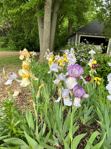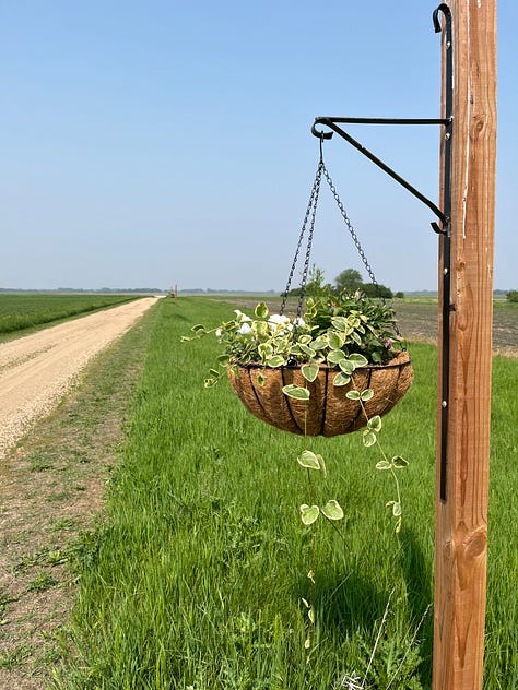 I'm spending more time observing spring than I have other years. I've always loved springtime because it was such a harbinger of hope, of possibility. I mean, if I hadn't enjoyed springtime, a career as a farmer would’ve been a waste of time. But I've always done my springtime enjoyment at a dead run. Clearly, the pace has slackened. Tonight, I'm doing my writing in a swinging chair that hangs from a walnut tree in the yard. It's surprisingly comfortable, even with the smoke from the Canadian wildfires adding a haze to the skies. Anna's yellow rose started popping out today, the snowball bush is in full glory and my wife's iris and lilacs look glorious. A few wildflowers are blooming on (!) and around my office, and I just spent a half hour with some targeted weed killer trying to encourage them by thinning out the burdock and Canadian thistle. The garden is looking good. We had four new fruit trees blossom this year and even my experiment trying to grow potatoes in a laundry basket looks like it will be wildly successful. And I gotta tell you, “wildly successful” and “my experiment” are sequences of words that don't very often fit into the same sentence. I wouldn't go so far as to say I'm ahead of the weeds, but I'm certainly still in the game and on Tuesday, Number Three is going to start coming over to help with the projects that require four hands, or some brute strength. In the larger world, my wife and I were happy to see three baby swans nestled between two giant protective parents.